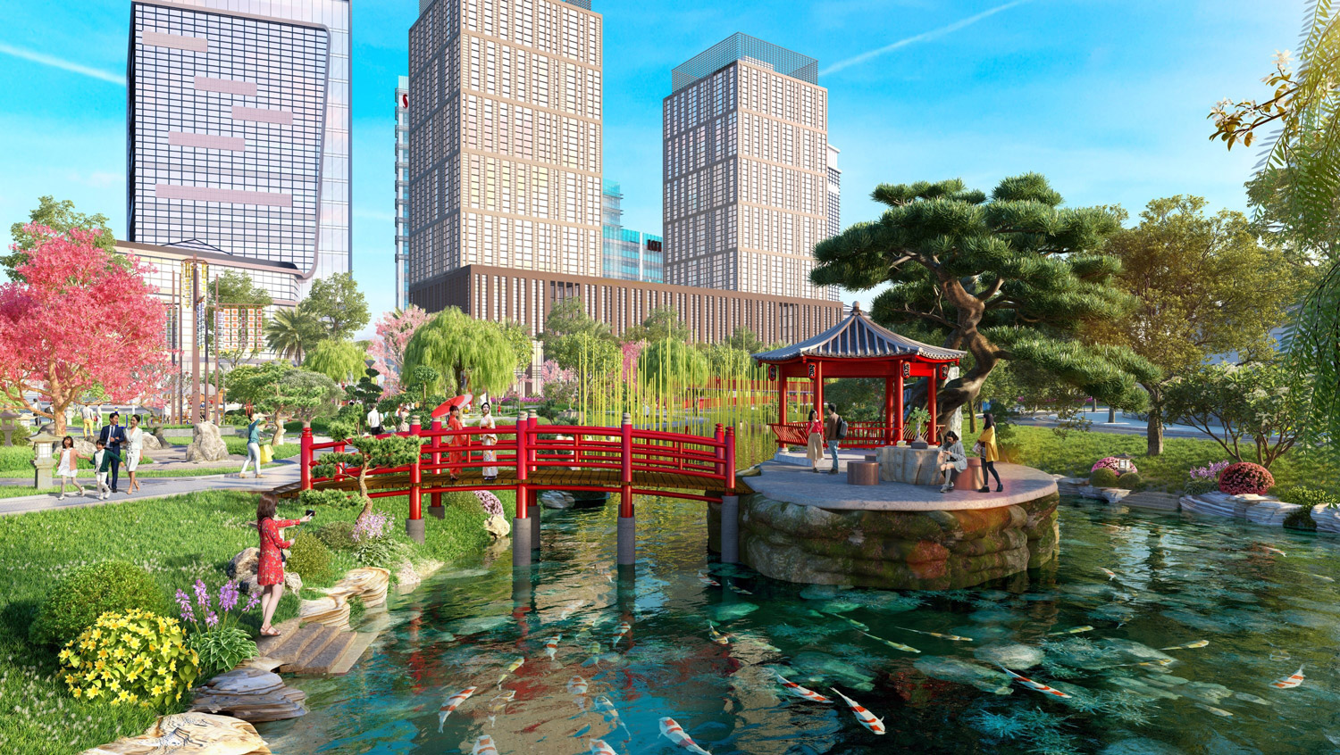 Công viên cảnh quan Phú Gia: Quy hoạch hơn 2.000 m² mảng xanh, mang đến không gian thư giãn chuẩn resort ngay giữa lòng dự án.