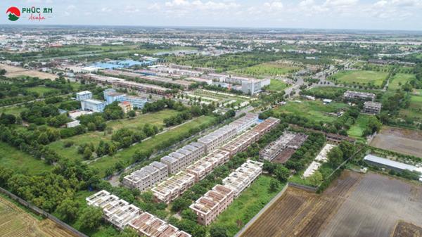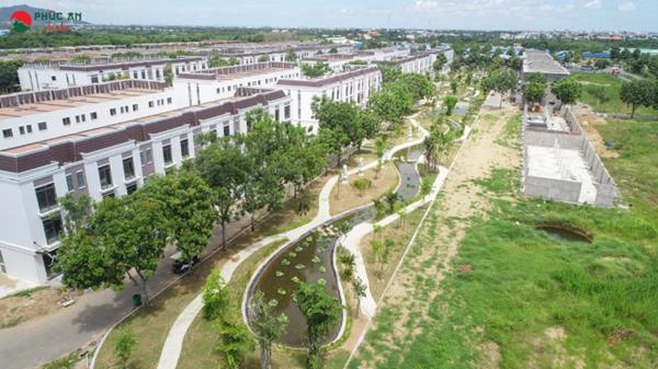 Loại hình: 283 căn nhà phố liên kế, 2 trung tâm dịch vụ thương mại và 1 trường học liên cấp rộng 4.000m2.