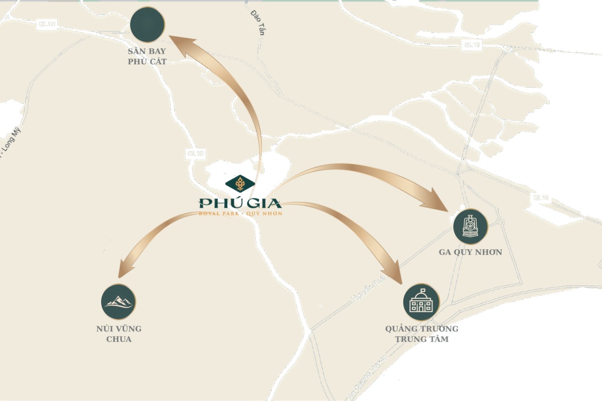 Từ Phú Gia Royal Park Quy Nhơn, cư dân chỉ mất vài phút để kết nối tới hàng loạt địa điểm trọng yếu và tiện ích sôi động: